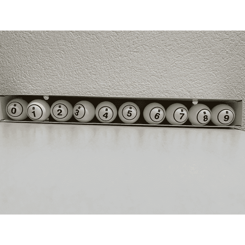 Diseñadas para ofrecer precisión y visibilidad en cada sorteo, este juego incluye 10 bolas numeradas del 0 al 9. Cada bola muestra la letra B, acompañada de su respectivo número. Fabricadas en color blanco con impresión en negro de alta legibilidad, son ideales para casinos y centros de entretenimiento que requieren materiales confiables y duraderos. Cada bola tiene un diámetro de 38 mm y un peso de 2.5 gramos, lo que garantiza un manejo uniforme y una experiencia de sorteo profesional.